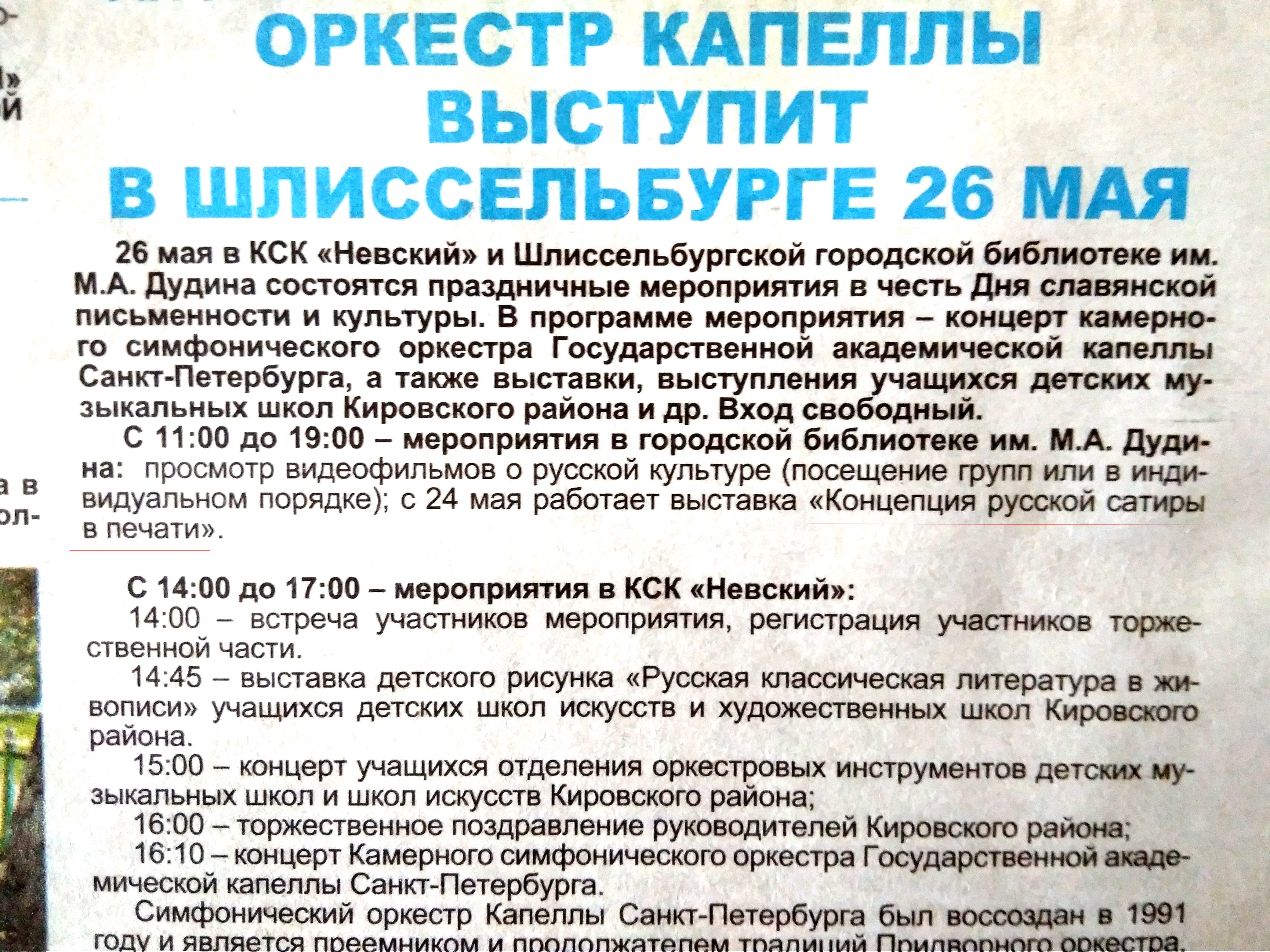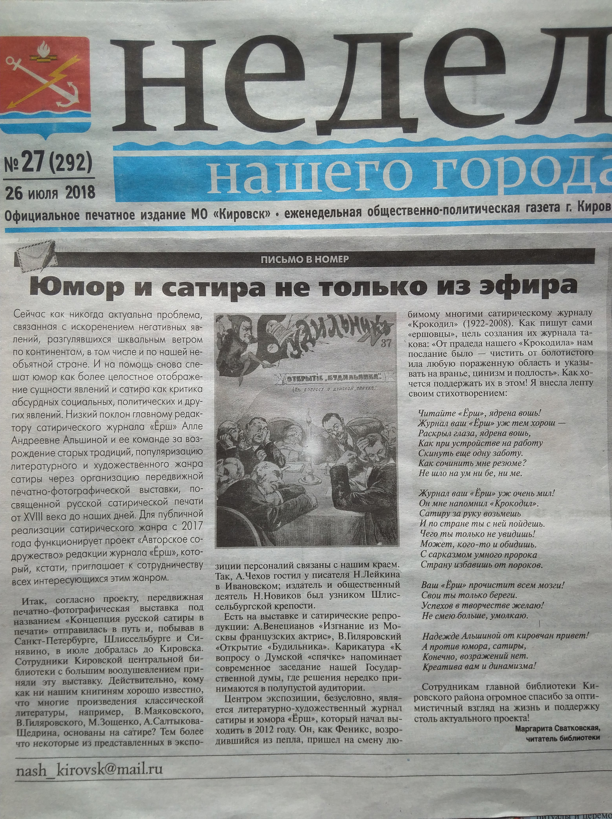 25.05.2018 Газета «Невский Исток» (объявление о выставе «Концепция русской сатиры в печати»)